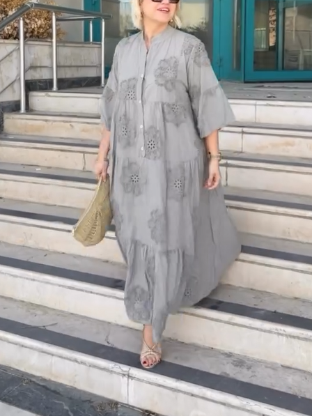 Introducing our Solid color imported embossed scallop cotton dress, designed for the modern woman who values sophistication and style. This dress features a stunning print and elegant maxi length, making it perfect for any occasion.